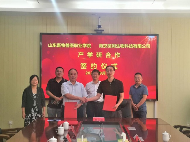 9月1日,南京微測生物科技有限公司與山東畜牧獸醫(yī)職業(yè)學(xué)院產(chǎn)學(xué)研合作簽約暨實(shí)驗(yàn)儀器捐贈(zèng)儀式在學(xué)校辦公樓三樓會(huì)議室舉行。南京微測生物科技有限公司總經(jīng)理肖理文、學(xué)校副校長周其虎出席儀式。