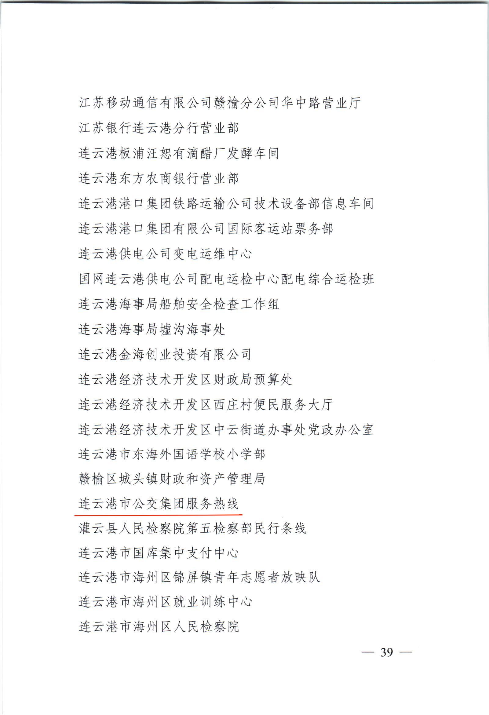 2015年,公交集團服務熱線榮獲連云港市“青年文明號”光榮稱號;2017年,榮獲江蘇省“青年文明號”光榮稱號;2024年,榮獲“一星級江蘇省青年文明號”榮譽稱號。集體成員多次榮獲“先進個人”、“新時代新發(fā)展”十佳選手、“紅心向黨起航未來”等榮譽,充分展示了“青年文明號”的風采,塑造了“窗口單位”良好形象。
