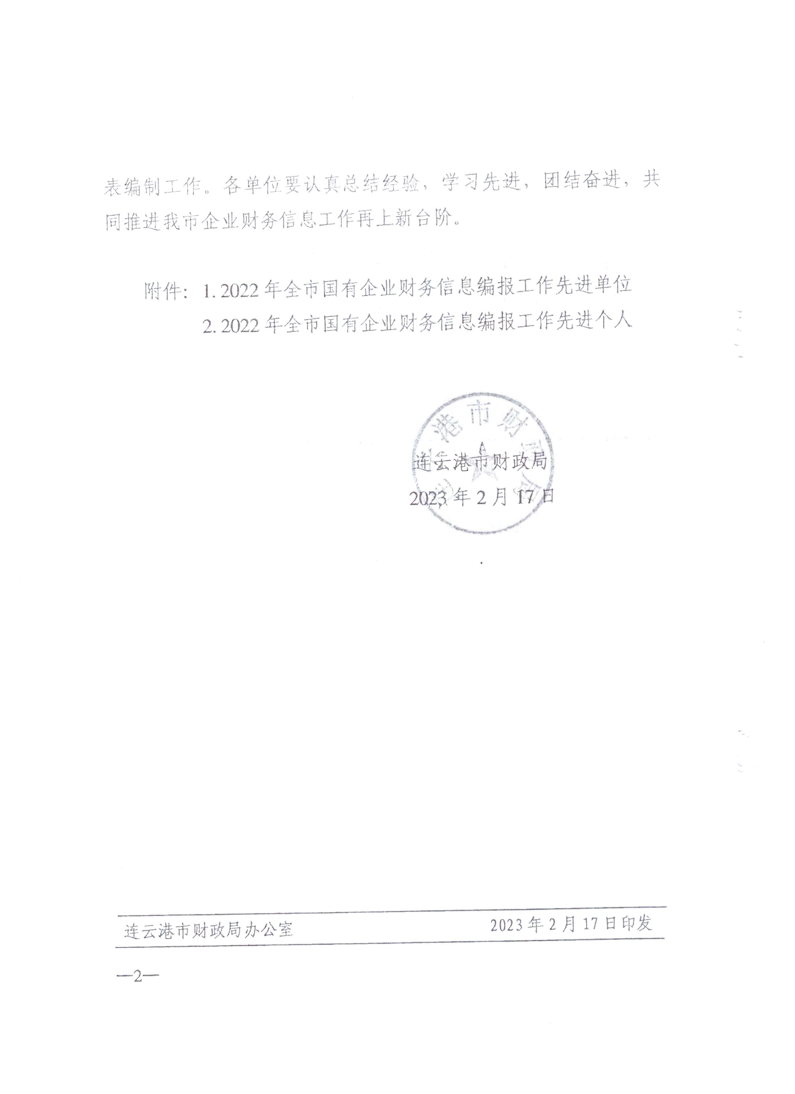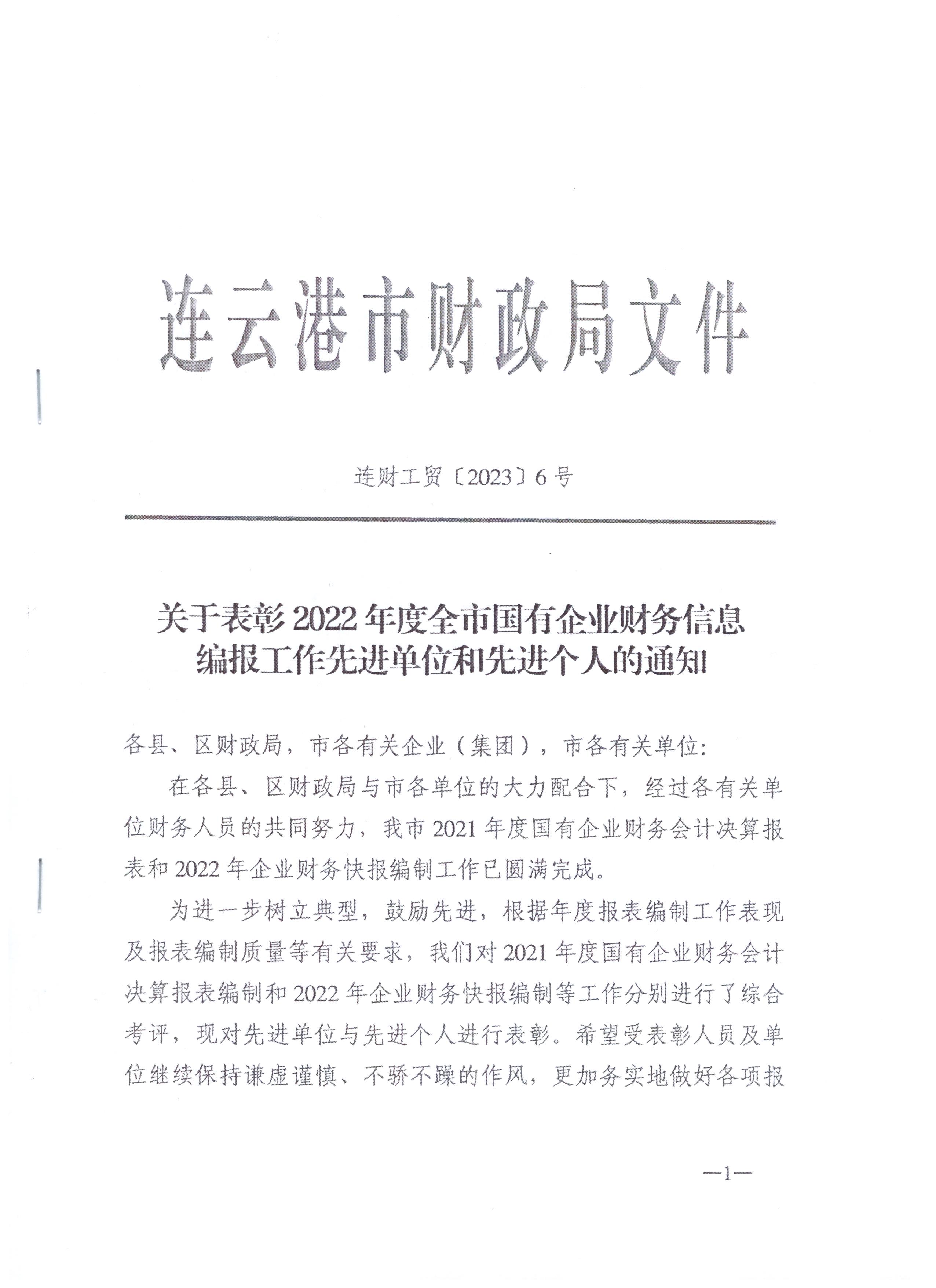 日前,從連云港市財(cái)政局下發(fā)的關(guān)于2022年企業(yè)財(cái)務(wù)快報(bào)編制工作綜合考評文件獲悉,集團(tuán)被評為全市財(cái)務(wù)信息工作先進(jìn)單位,集團(tuán)財(cái)務(wù)融資部聶丹被評為財(cái)務(wù)信息工作先進(jìn)個(gè)人。