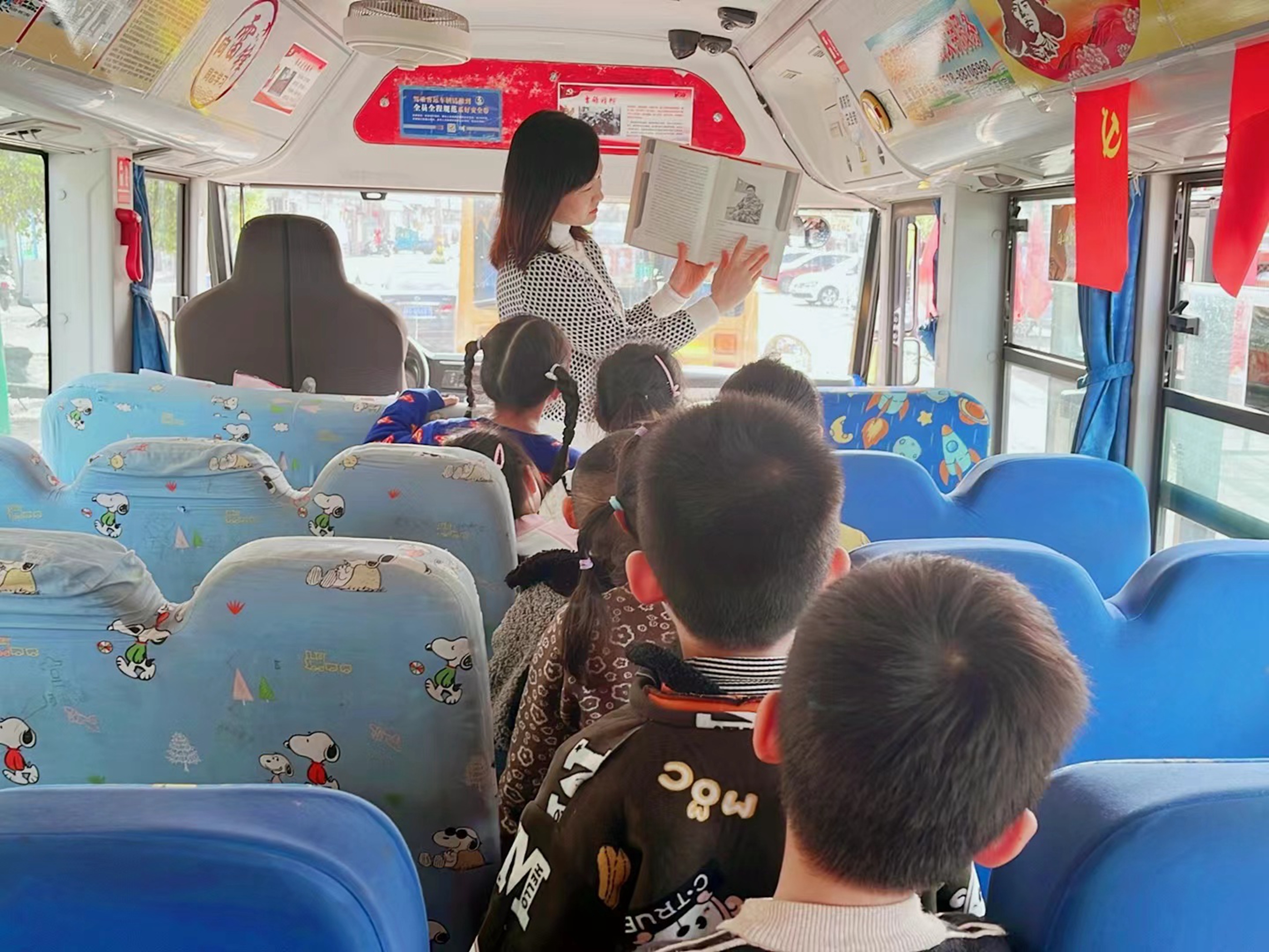 以書為媒,以閱讀為紐帶,整個車廂都浸潤著濃濃的書香。伴著孩子們的朗朗書聲,千年的文化古韻在行駛的校車中傳頌。