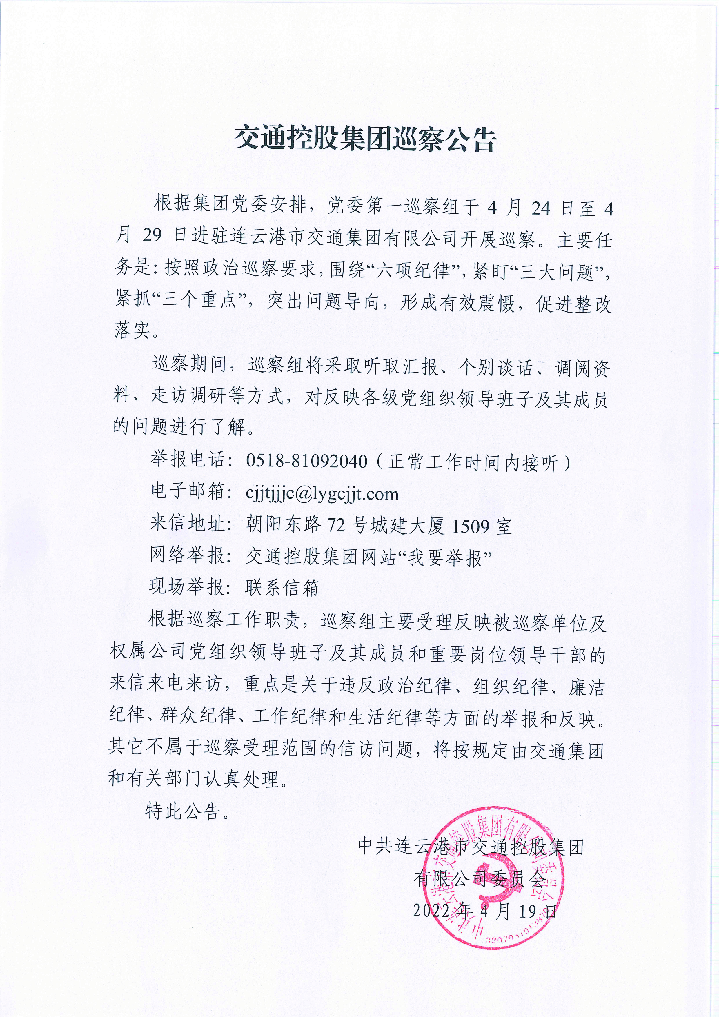 關(guān)于集團(tuán)權(quán)屬交通集團(tuán)的巡查公告