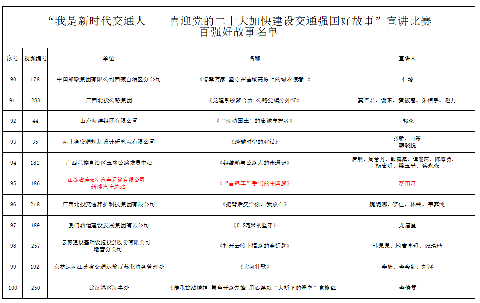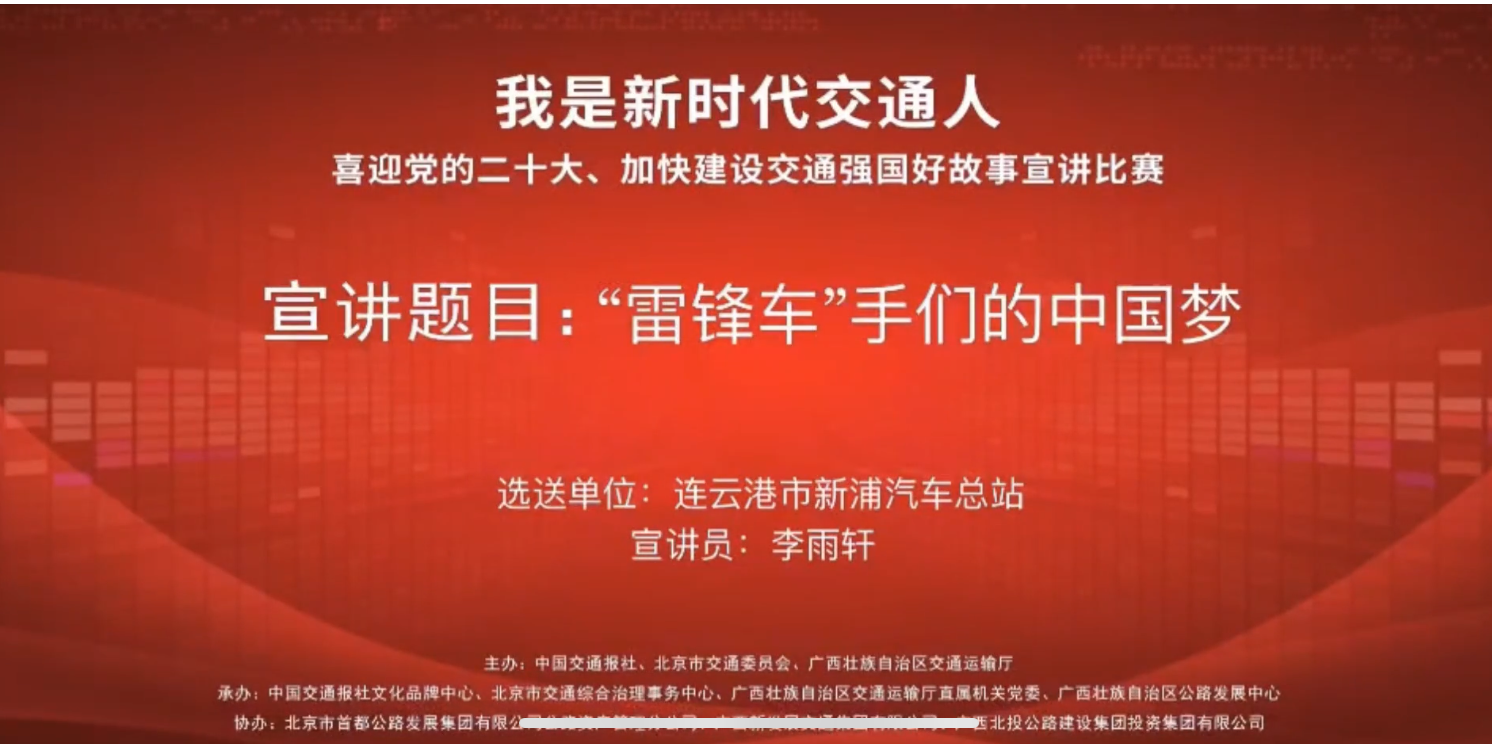近日,從中國交通報傳來好消息,由連汽新浦汽車總站選送的《雷鋒車手們的“中國夢”》故事宣講榮獲“我是新時代交通人——喜迎二十大、加快建設(shè)交通強國好故事”的“百強好故事”。