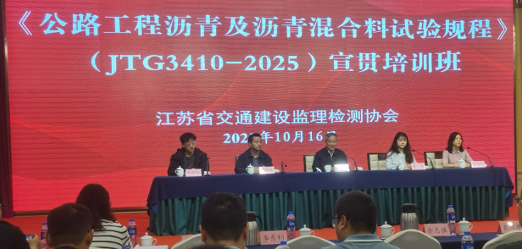 10月15日至17日,由江蘇省交通建設(shè)監(jiān)理檢測協(xié)會主辦的《公路工程瀝青及瀝青混合料試驗規(guī)程》(JTG 3410-2025)新標(biāo)準(zhǔn)專題培訓(xùn)在南京順利召開。新絲路檢測公司選派技術(shù)負責(zé)人及相關(guān)試驗骨干受邀參訓(xùn),系統(tǒng)學(xué)習(xí)新規(guī)要點,為后續(xù)檢測工作合規(guī)開展夯實基礎(chǔ)。